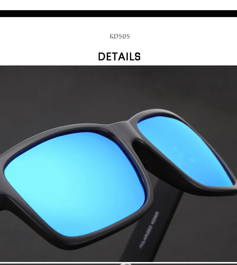 Мужские и женские зеркальные очки KDEAM, брендовые дизайнерские прямоугольные солнцезащитные очки с поляризацией, черные очки для вождения