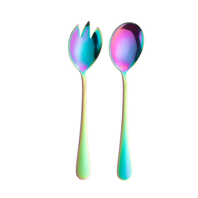 Столовые приборы, набор золотых ложек, стальные столовые приборы, вилка для салата, 2 шт., ложки для салата из нержавеющей стали, Сервировочный набор ложек уникальных ложек