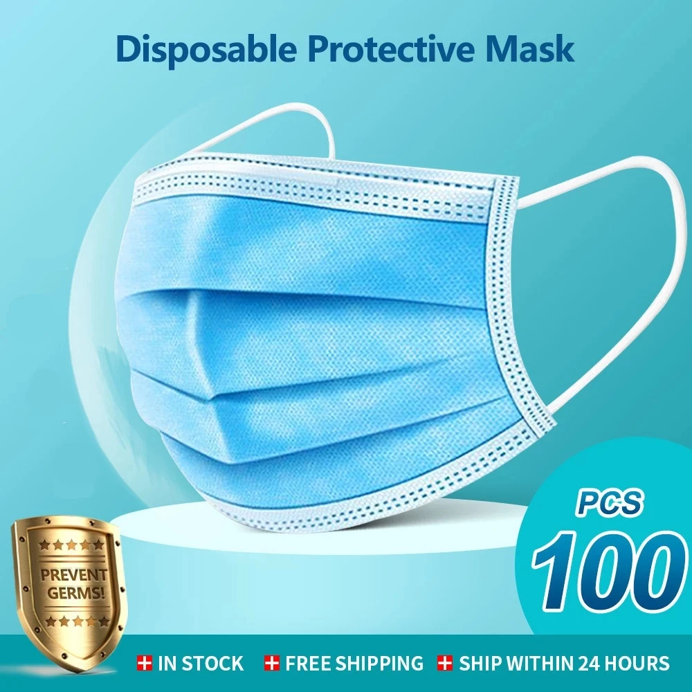 100 шт одноразовые маски для лица промышленные 3 слойные петли для ушей