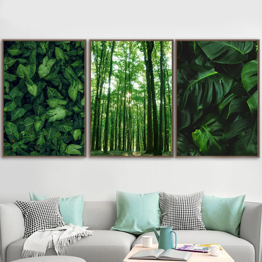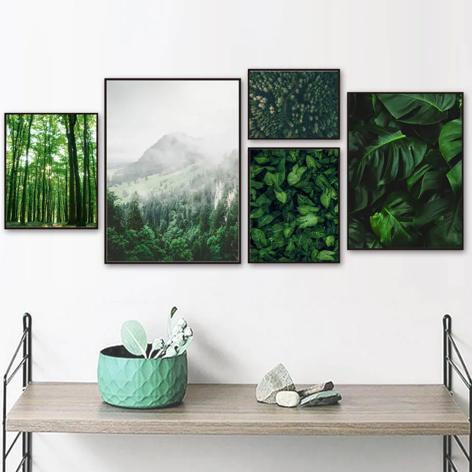 Настенная Картина на холсте с изображением зеленых лесов листьев тумана гор, скандинавские постеры и принты для гостиной, Декор, настенные картины