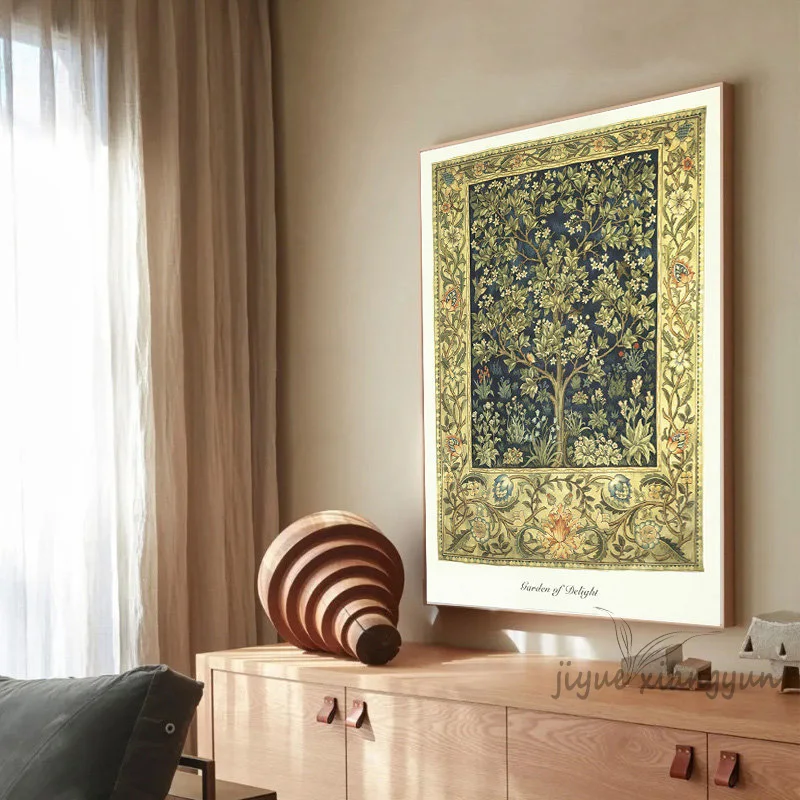 Вильям Моррис Дерево жизни Счастливое дерево печатная масса Ретро стиль узор Классический постер холст картина для домашнего декора