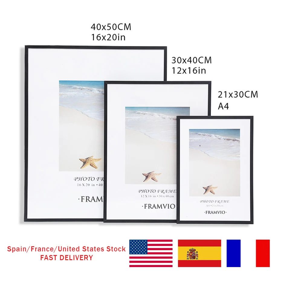 Современные настенные фоторамки, металлические черные и белые рамки для фотографий, коврик из плексигласа 50x70 40x50 30x40 A4 см для плакатов, принтов, Декор для дома