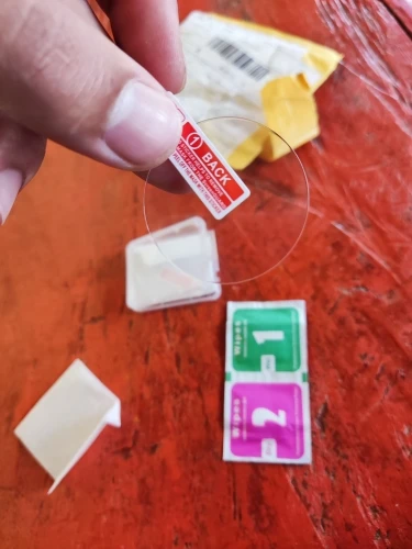 Защитное стекло пришло быстро. Сразу наклеил на часы, смотрится отлично. Клеил другим способом сначала намочил циферблат и защитное стекло и соединил друг с другом и получилось отлично без мусора и без воздуха. Продавцу большое спасибо