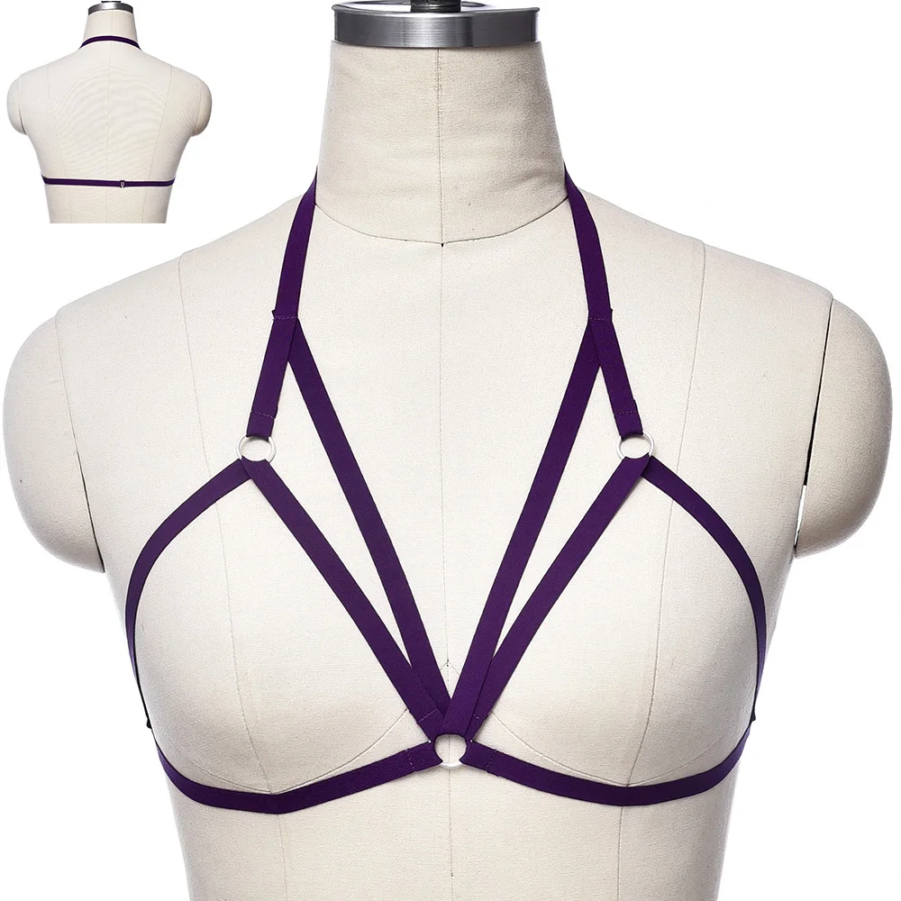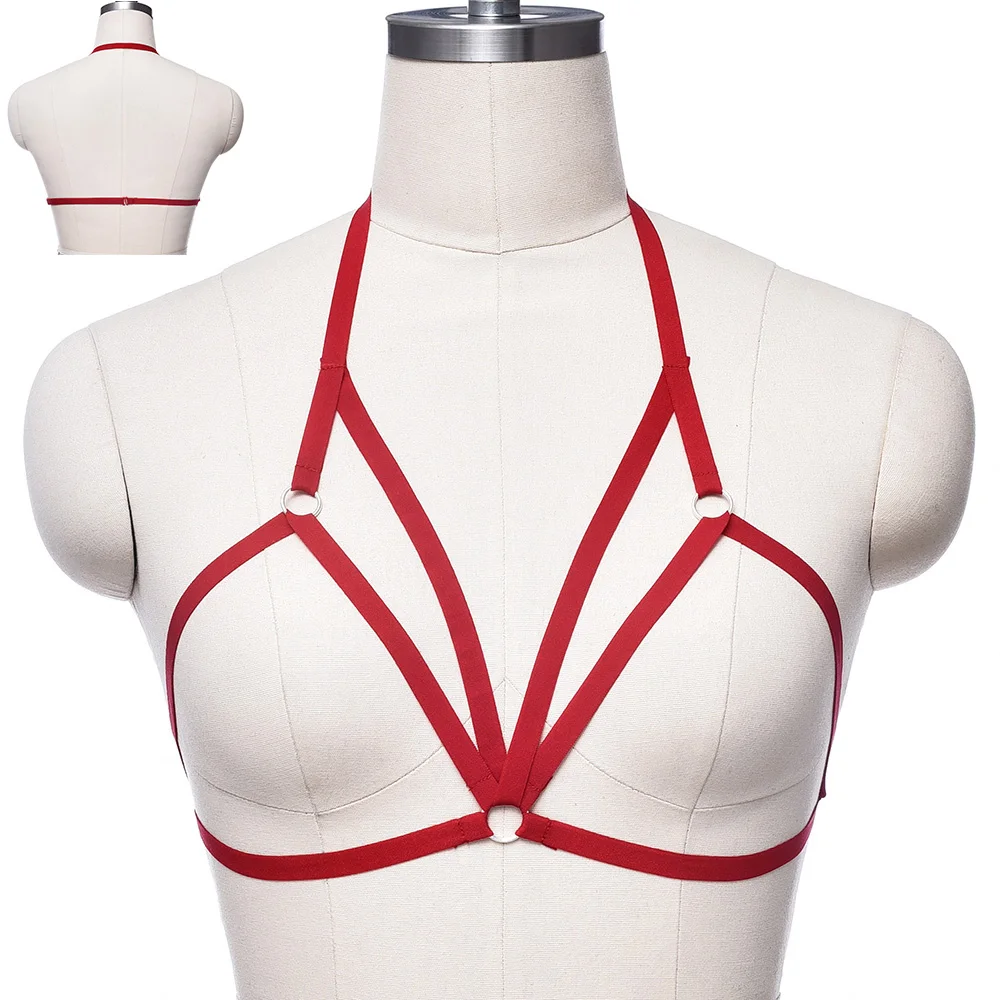 Бюстгальтер женский эластичный, с ремешками, обвязка в стиле гот ха...