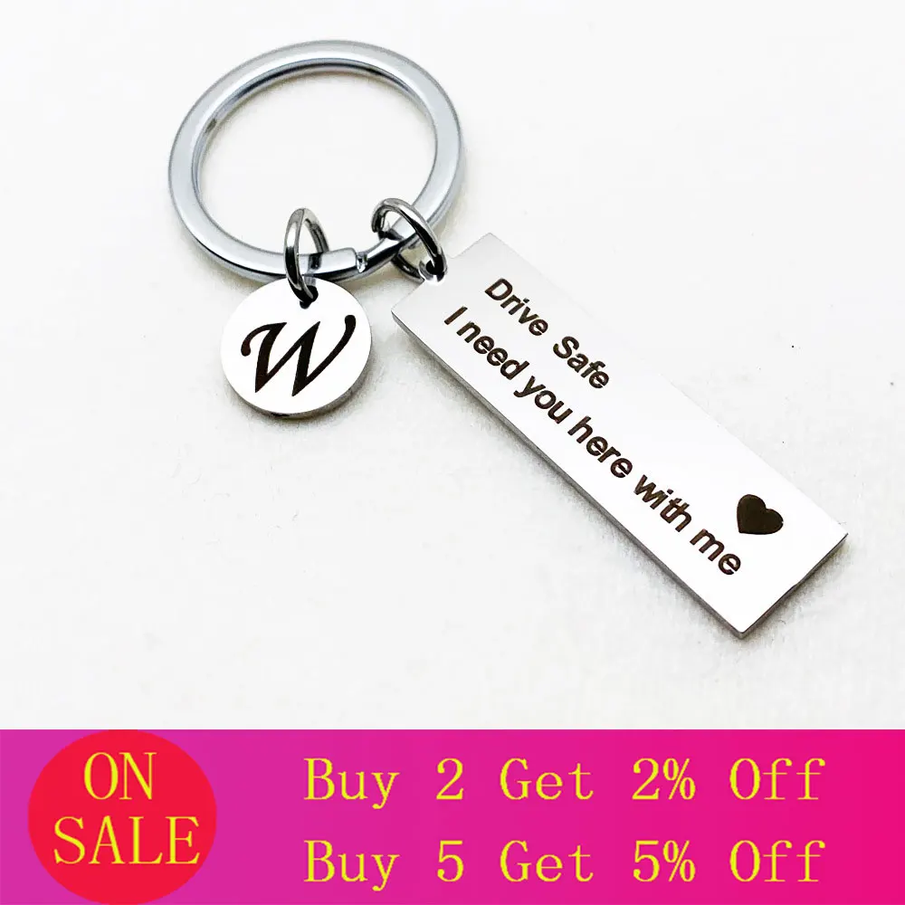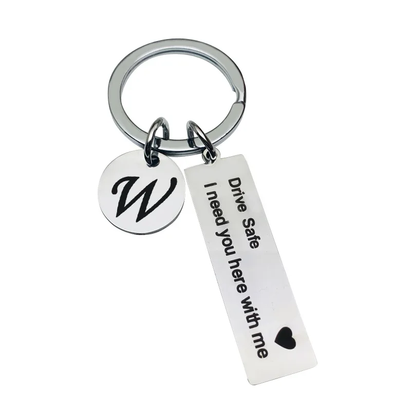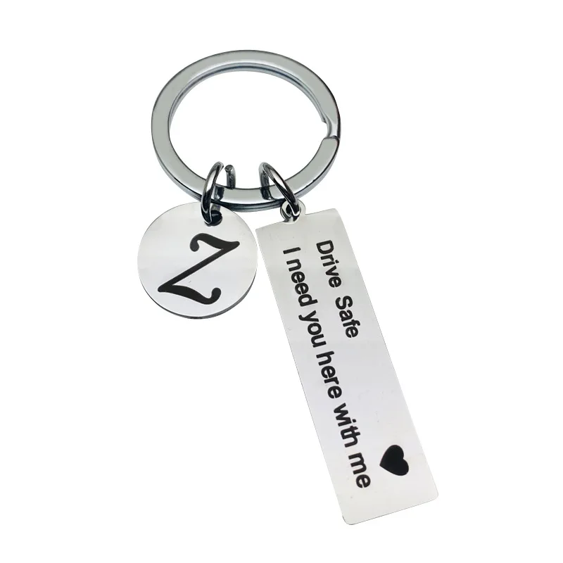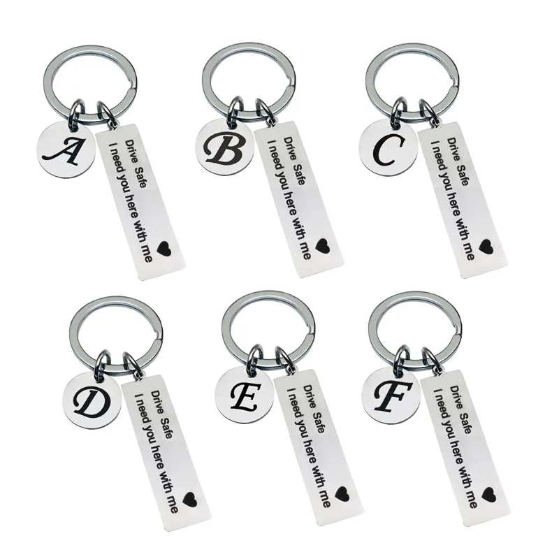 Безопасность вождения I Need You со мной автомобильный брелок для ключей из нержавеющей стали круглый диски с инициалами насквозь письмо брелок для Пижама для женщин, мужчин, ювелирные изделия