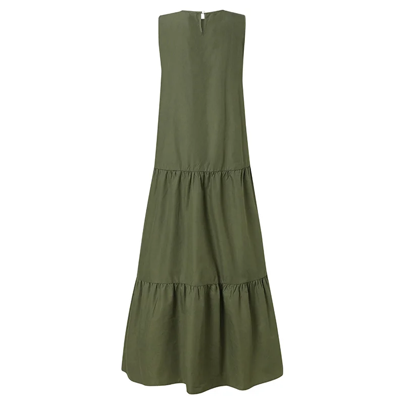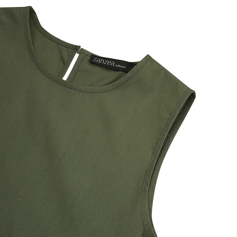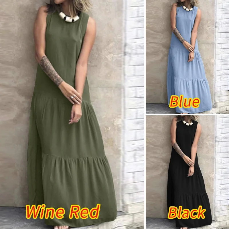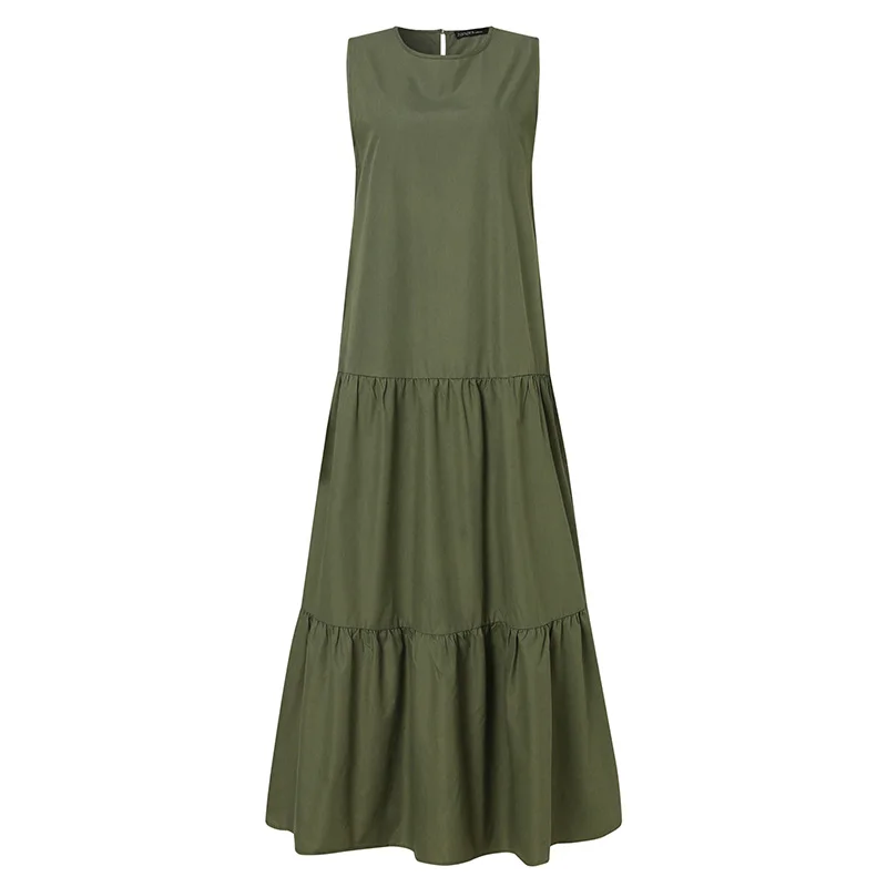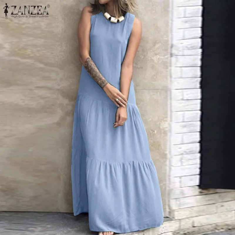 Платье ZANZEA женское с оборками, элегантный однотонный Повседневный длинный сарафан без рукавов, с круглым вырезом, 7, лето 2021