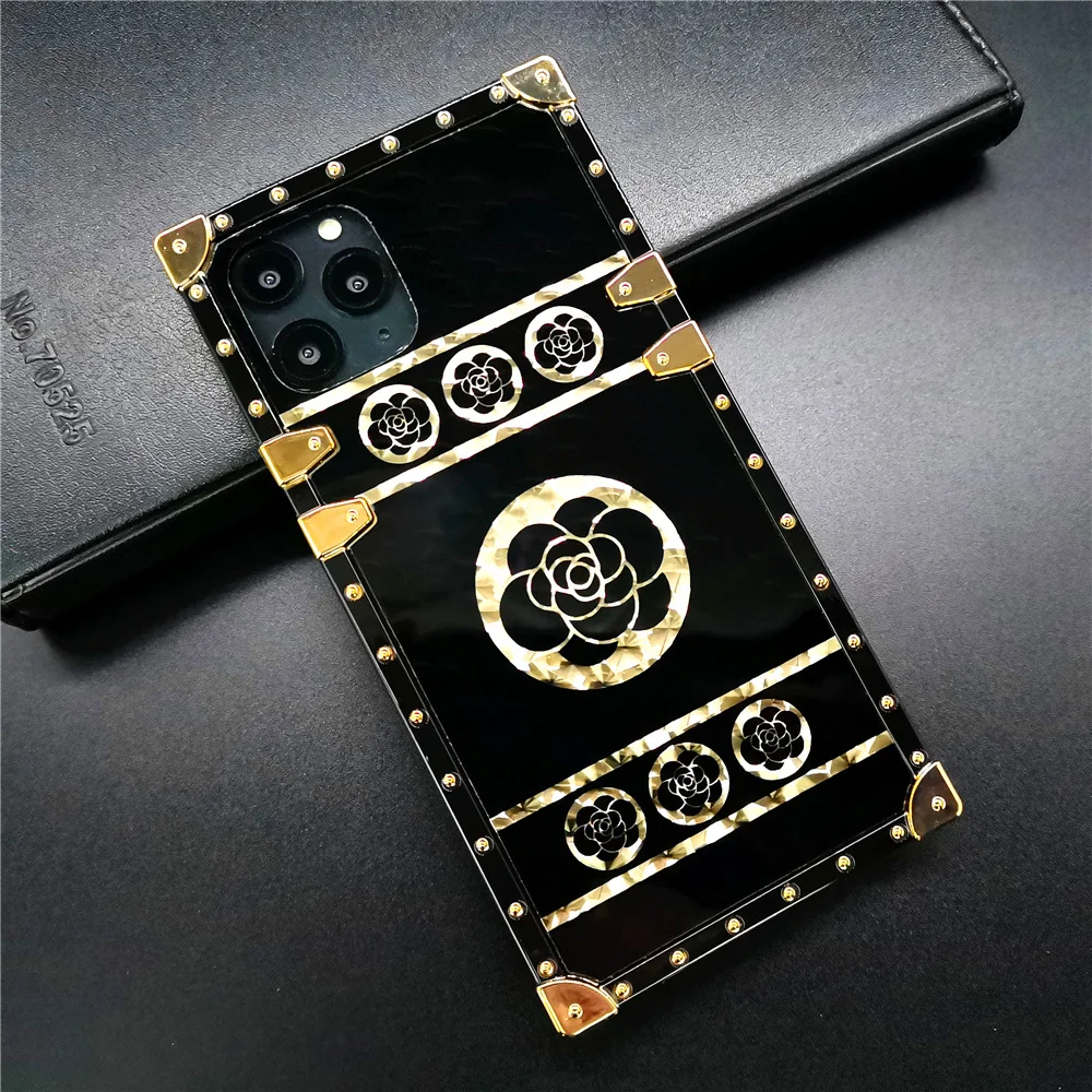 Роскошный блестящий черный квадратный золотой чехол с цветами для i...