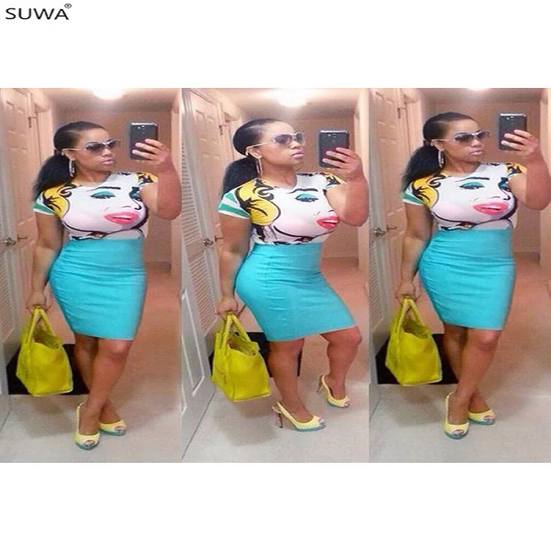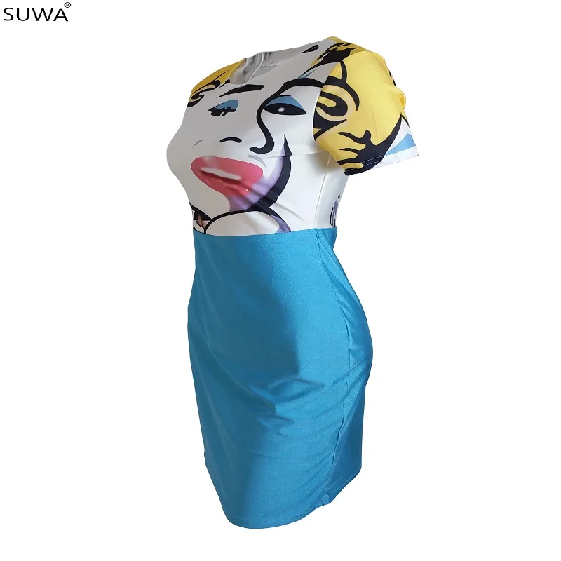 Женское ТРАПЕЦИЕВИДНОЕ ПЛАТЬЕ С мультяшным принтом, элегантное пикантное мини-платье с коротким рукавом и круглым вырезом, Новинка лета 2021