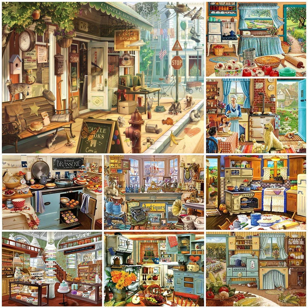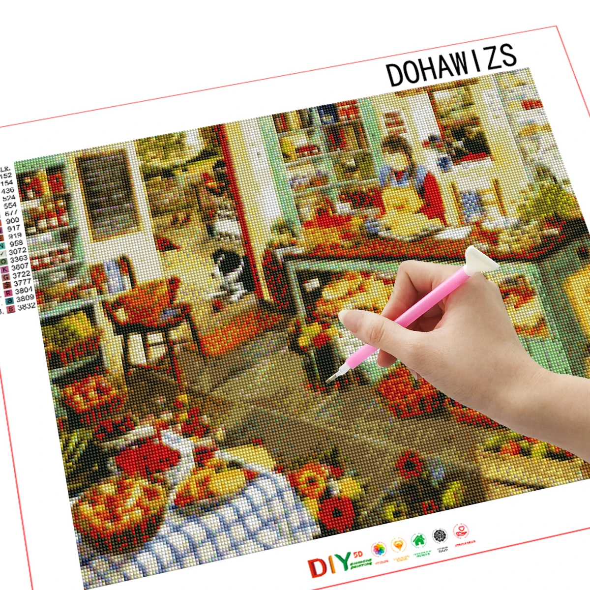 Алмазная вышивка 5D городской магазин, алмазная живопись, мозаика, пейзаж, кухня, настенные художественные украшения, Новое поступление