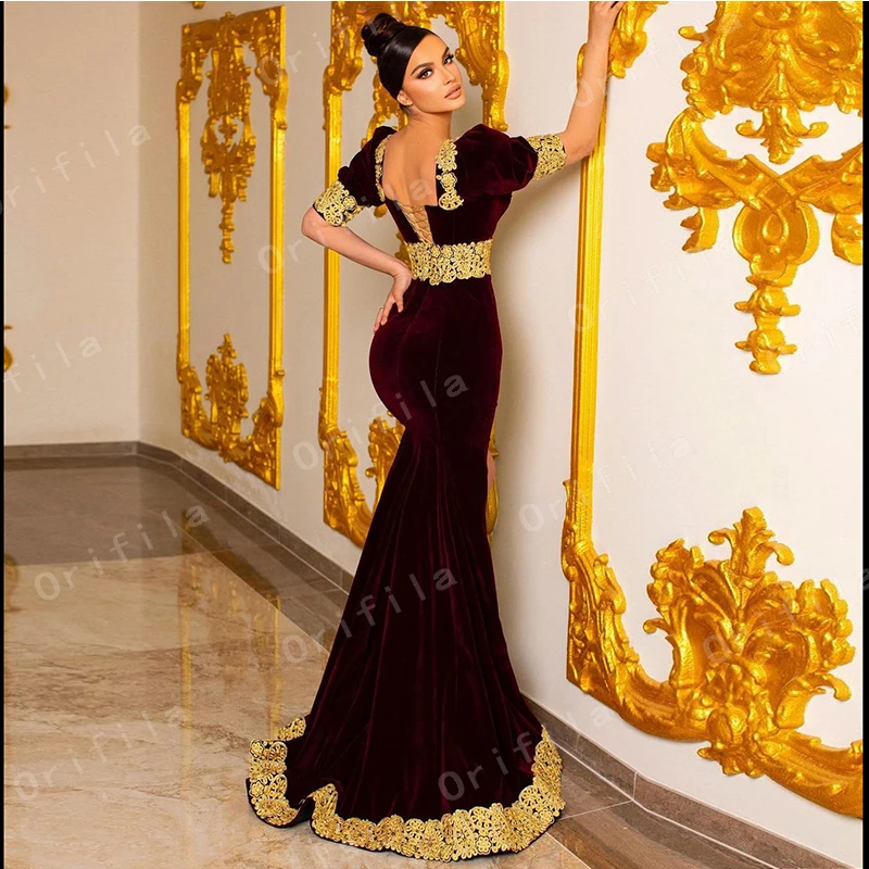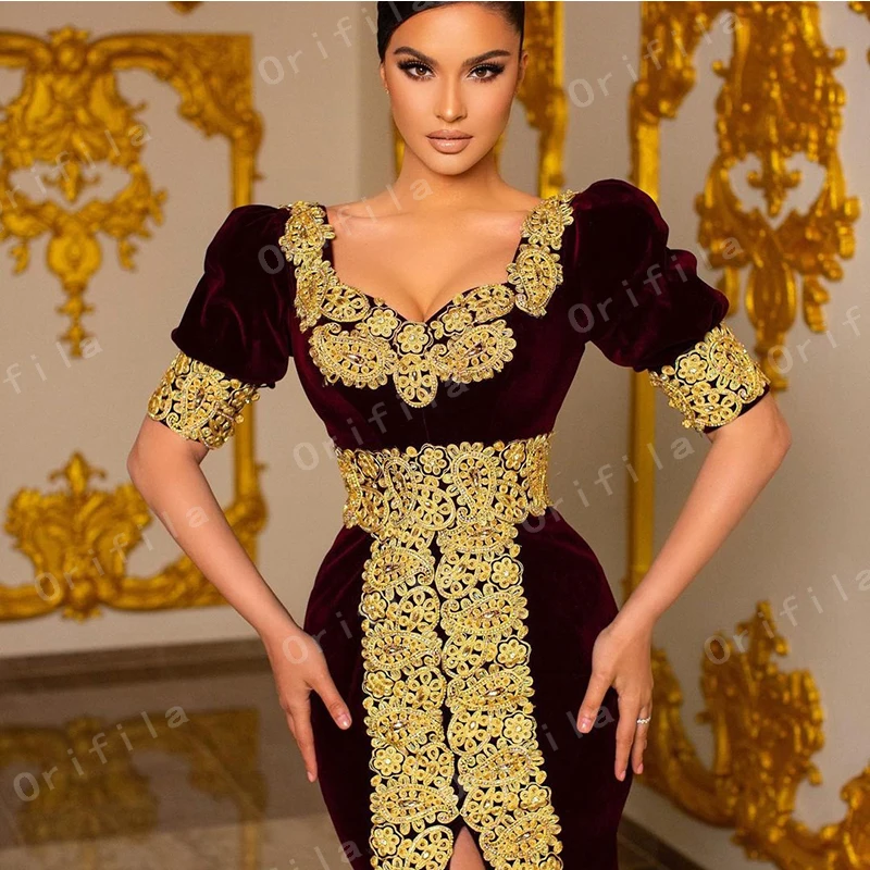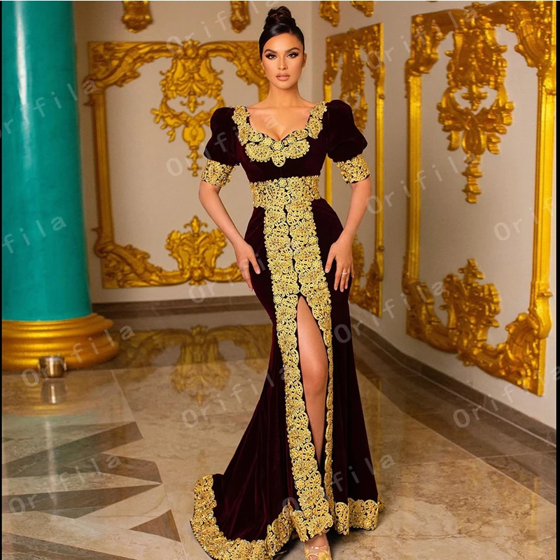 Ярко-синее алжирское вечернее платье Caftan, Марокканское бархатное...