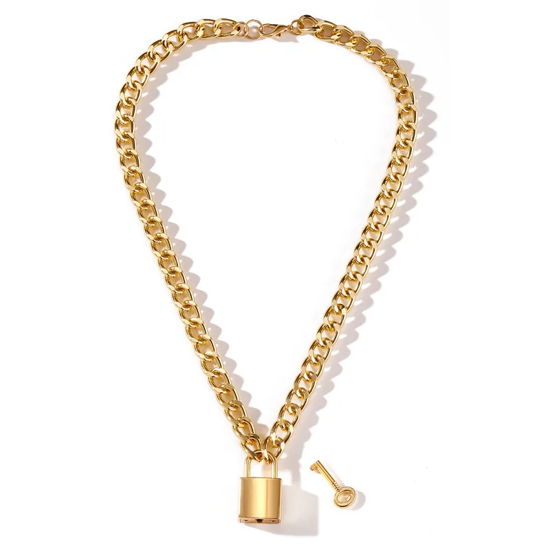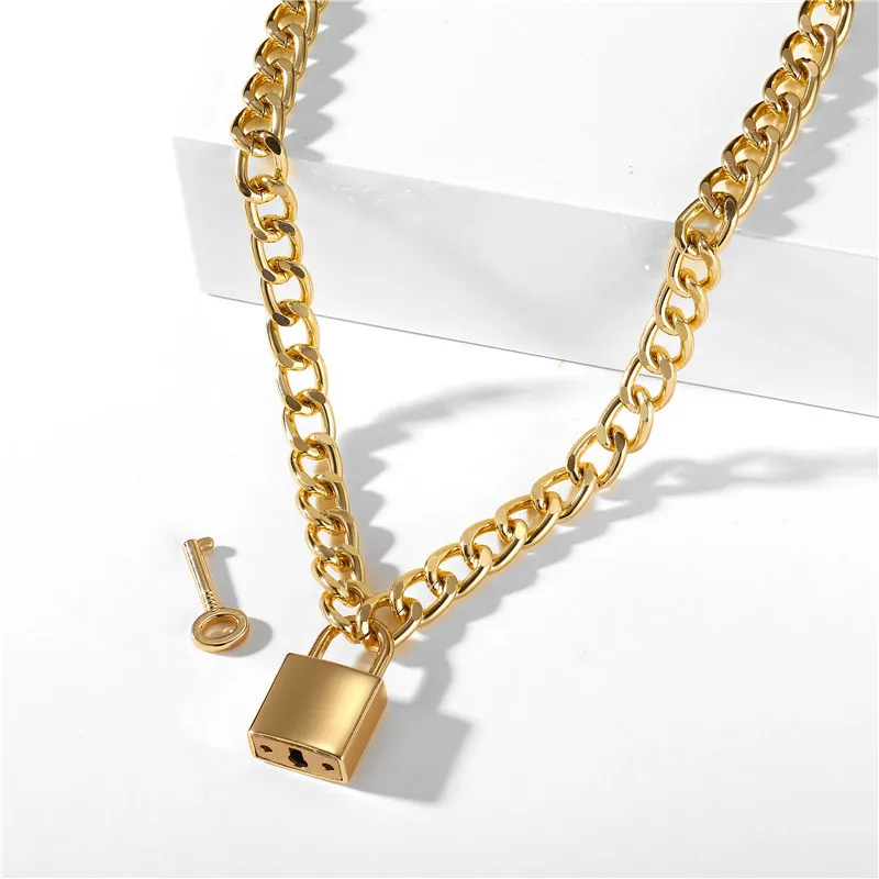 Gothtic с золотистым замочком массивное ожерелье-цепочка для женщин и мужчин, большой цепи открываемые замок ожерелье с подвеской в виде ключа преувеличенный ювелирные изделия