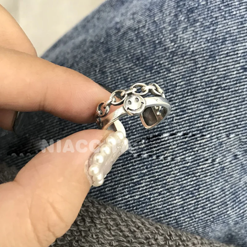 Винтажный набор, кольцо с улыбающимся лицом, Корейская эстатическая открытая цепочка, поворотное кольцо, ювелирные изделия в стиле бохо, панк, готический подарок для мужчин, женщин, мужчин, набор колец для вечеринки