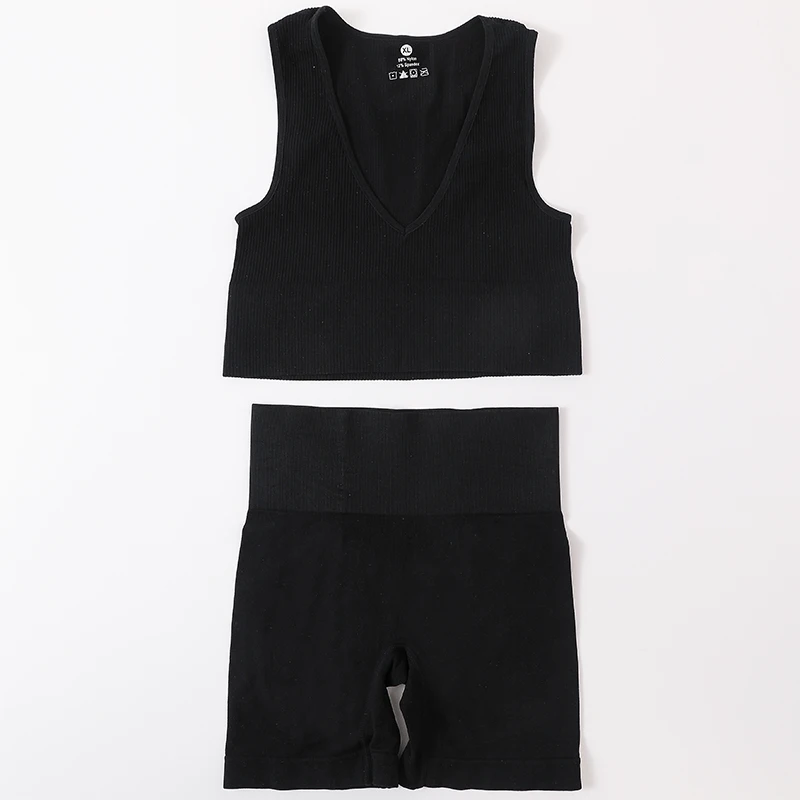 Женский комплект из бюстгальтера и трусов, укороченный топ с глубоким V-образным вырезом, шорты с высокой талией, бесшовный спортивный топ для фитнеса, сексуальное нижнее белье