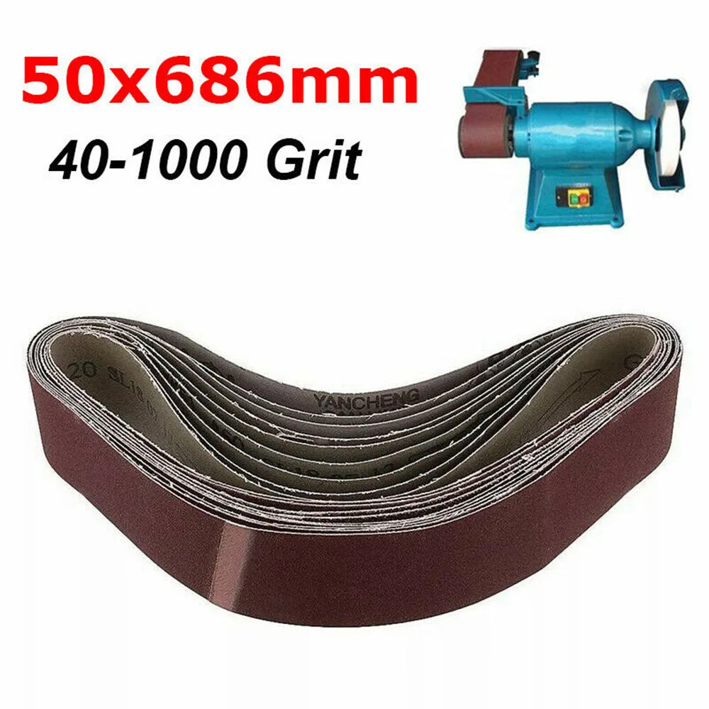 Шлифовальная лента для металла и дерева, Зернистость 40-686, 10 шт., 2x27 дюймов, 50x1000 мм, шлифовальные ленты, инструменты для полировки