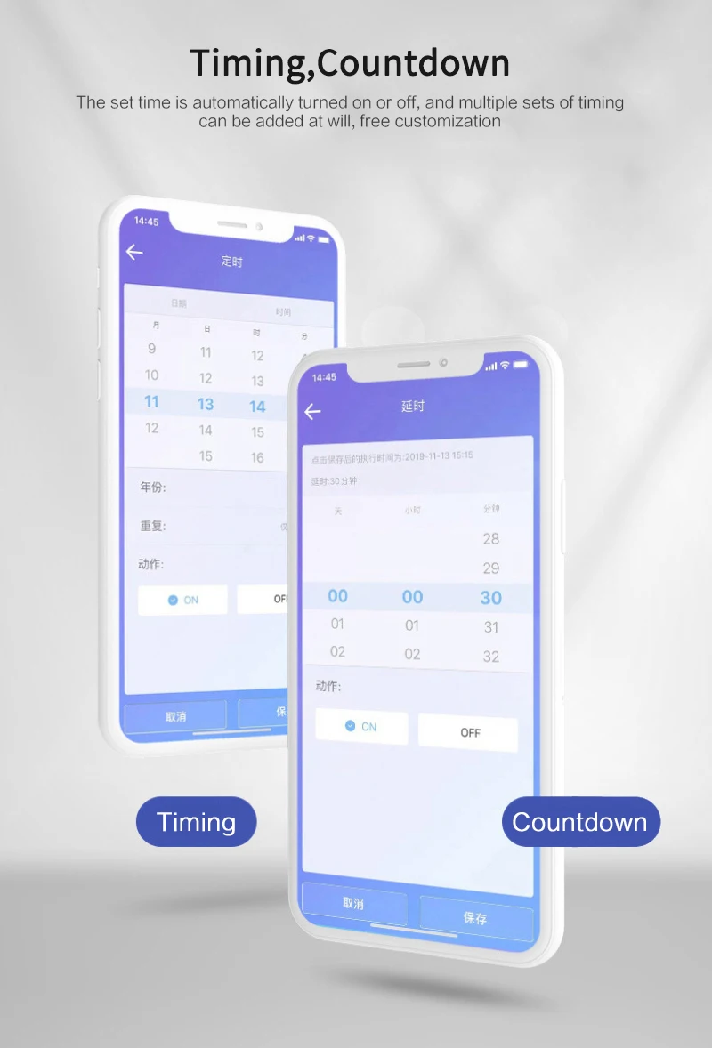 Управляйте светильник в любое время и в любом месте, и вы можете включать/выключать эти устройства через Управление смартфоном под управлением системы IOS или Android