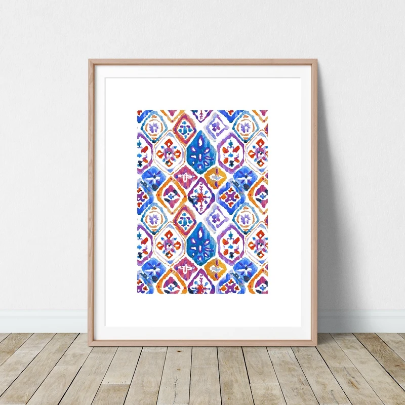 Абстрактная акварель в богемном стиле настенный художественный холст картина Ikat Плакаты и печать, Картина Настенная для Гостиная дома Бохо Настенный декор icon star icon star icon star icon star icon star