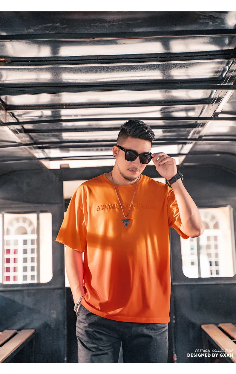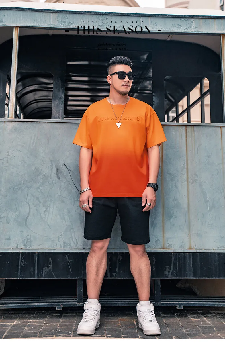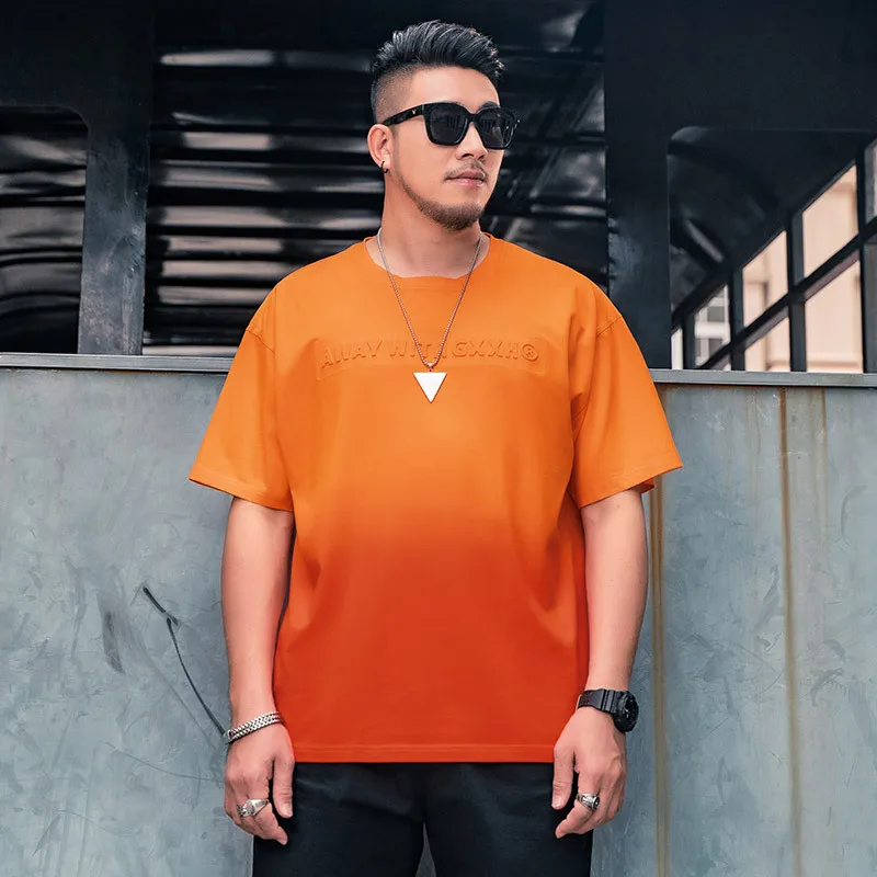 GXXH более Размеры мужская прилив бренд размера плюс Размеры 7XL футболка с коротким рукавом на возраст от 0 до на шее, свободна Повседневная градиент висит окрашенный рельефный, футболки, топы