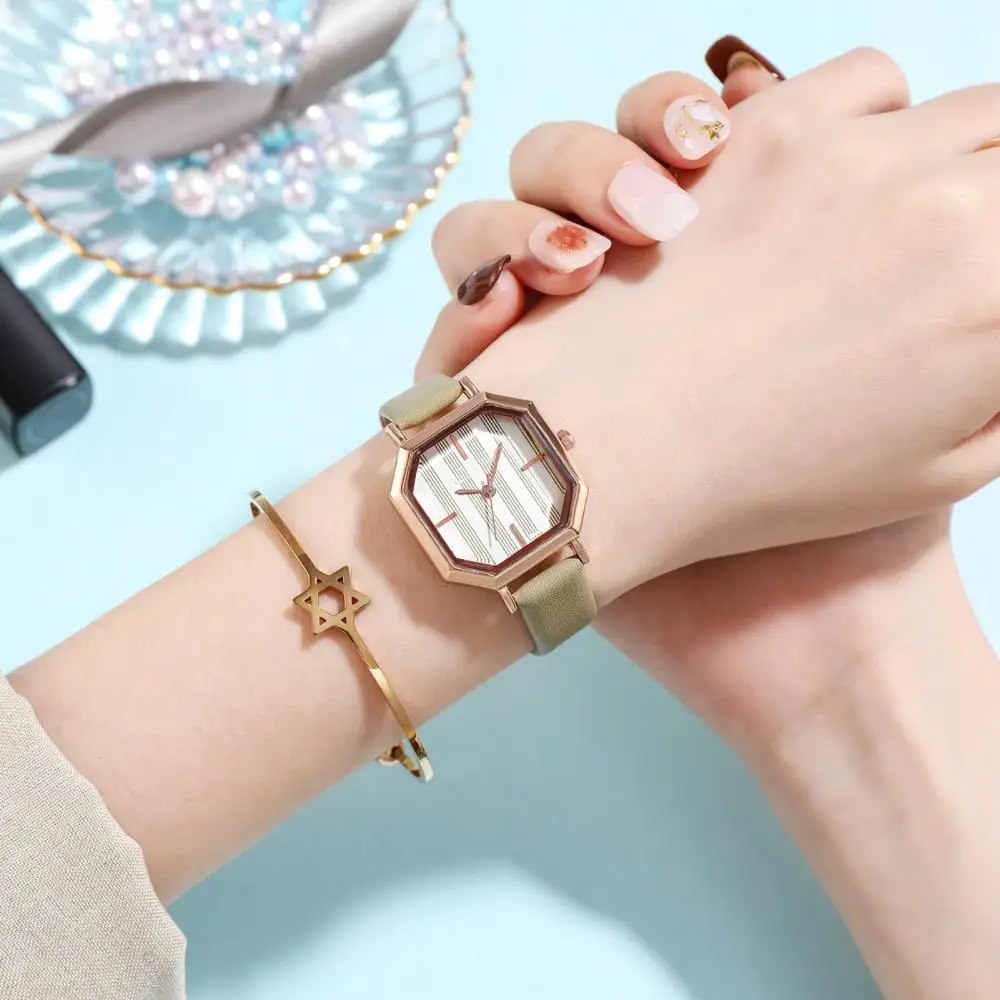 Женские Простые кварцевые часы, восьмиугольный циферблат, ремешок из искусственной кожи, браслет, наручные часы, стильные женские часы с ремешком, Relogio Feminino