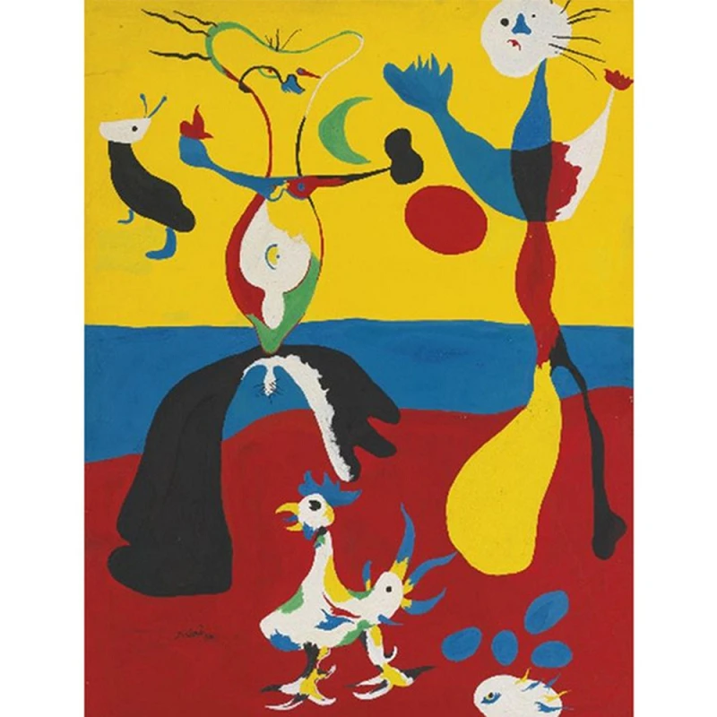 Винтажная абстрактная картина живописи маслом Джоан Миро, Репродукц...