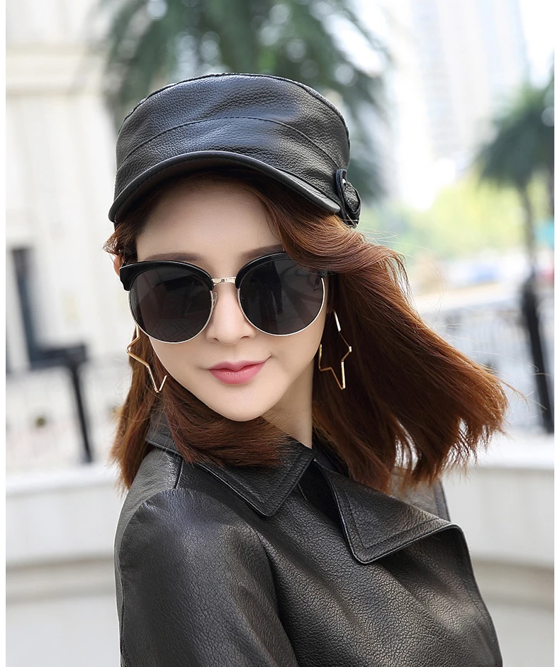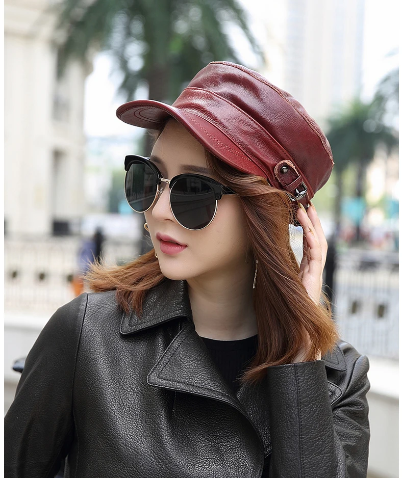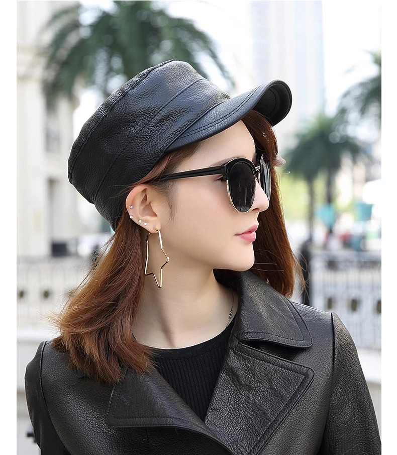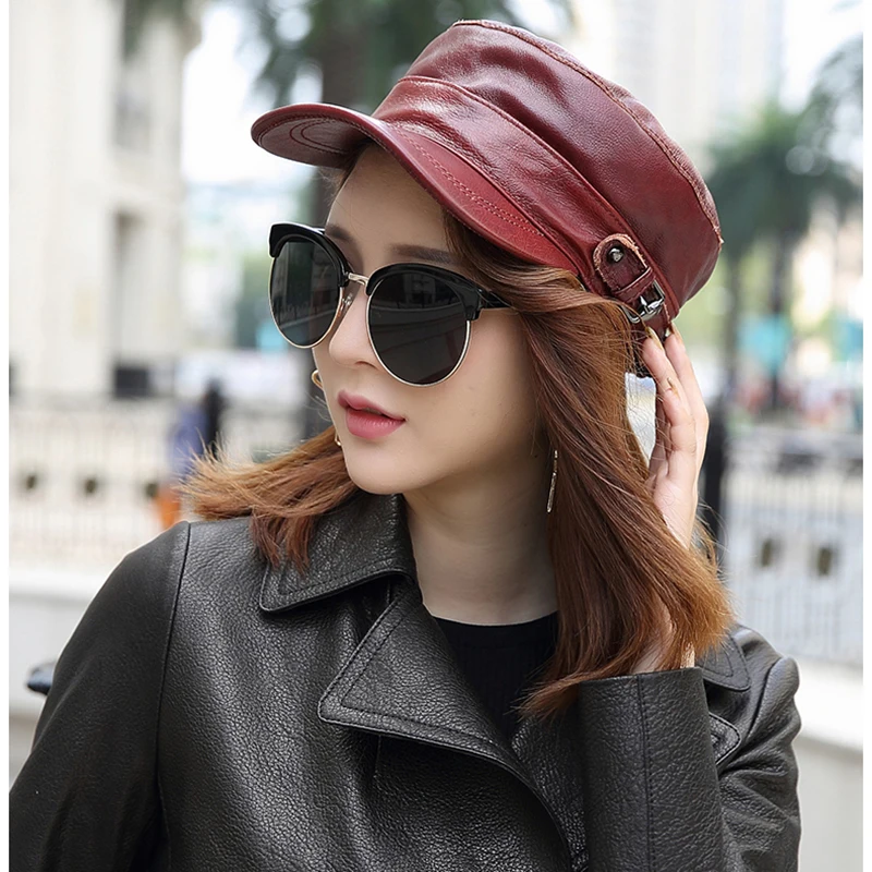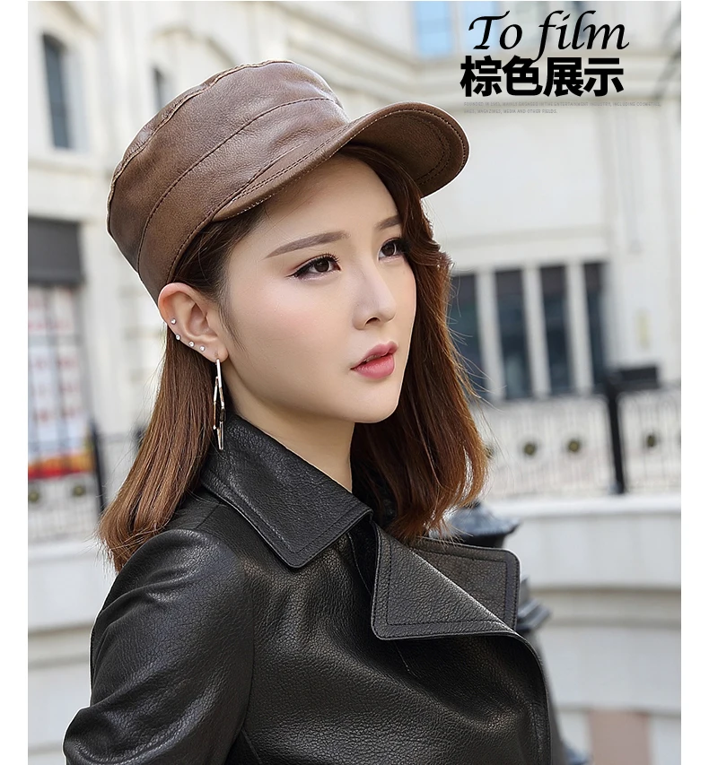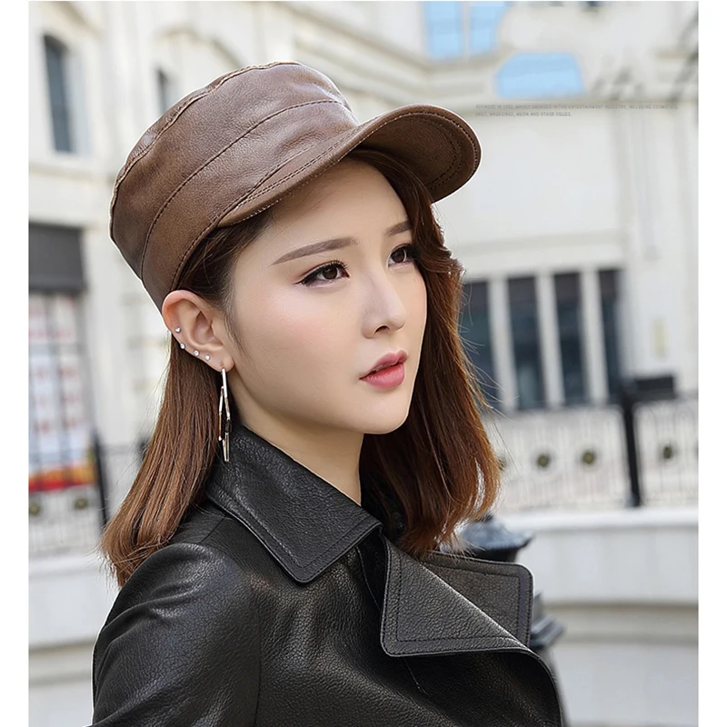 Берет из натуральной кожи зимние весенние шапки для женщин Кепка ху...