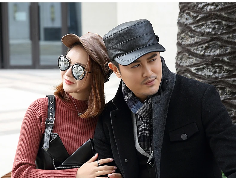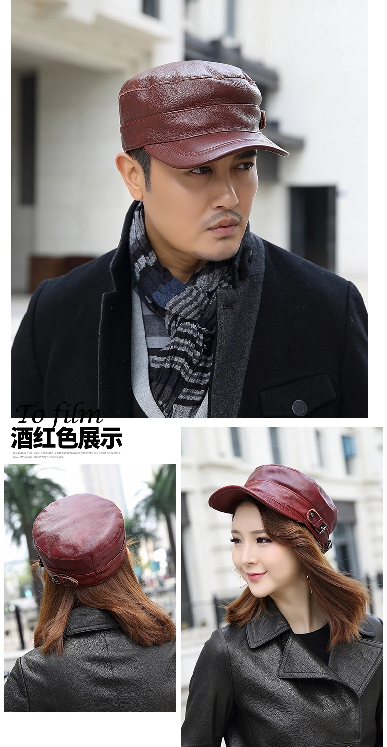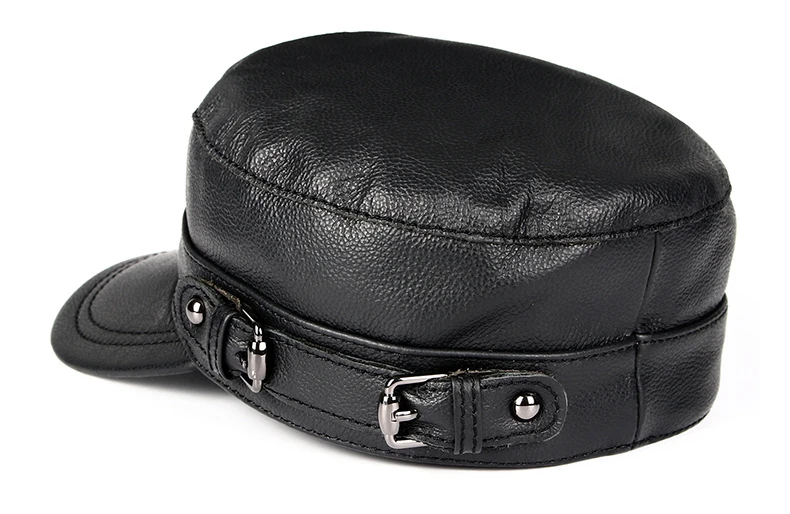 Новинка 2021, черные военные шапки из натуральной кожи для женщин и мужчин, винтажная армейская шапка, берет из воловьей кожи, кепка для дам, мужская осенне-зимняя шапка