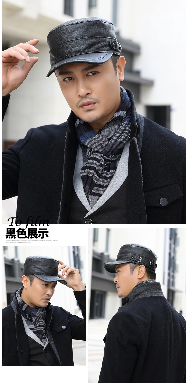 Мужской уличный кожаный берет, зимняя теплая шапка для защиты ушей,...