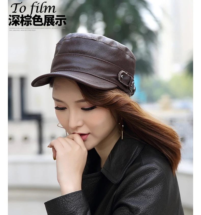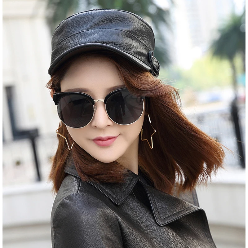Модная военная шапка из натуральной кожи, весенняя шапка для женщин...