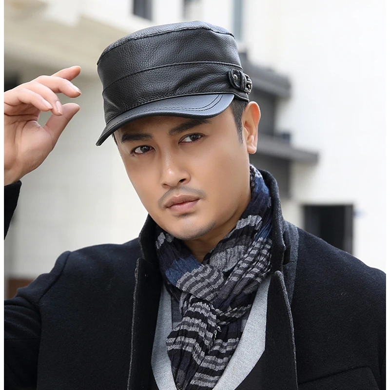 Кепка из натуральной кожи, Мужская кепка на плоской подошве, Кепка ...