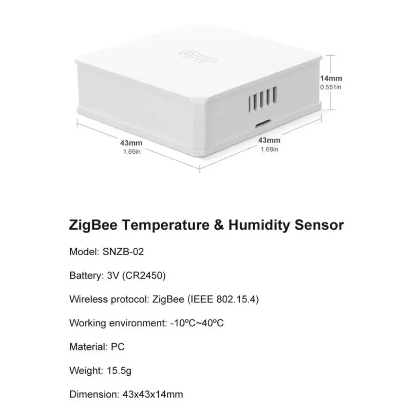 SONOFF SNZB-02-это датчик температуры и влажности ZigBee, который легко работаетМост SONOFF ZigBeeЧтобы отслеживать изменение температуры и влажности в вашем доме, все показания в реальном времени можно проверить в приложении eWeLink. Еще лучше, вы можете установить состояние в смарт-сцене, что Вентилятор включается/выключается, когда температура достигает предельного значения, или осушитель воздуха в вашей комнате начинает работать, когда влажность выше, помогая предотвратить рост плесени и аллергенов. Вы можете установить умную сцену для запуска оповещений через такие события, как высокая/низкая температура, высокая/низкая влажность и многое другое. Функция обмена устройствами позволяет вашим детям, семье и даже соседям получать информацию об условиях окружающей среды вашего дома с помощью своих мобильных телефонов. Функция камеры доступна на сенсоре, чтобы вы знали, что происходит в вашем доме. Это оставляет за собой время для принятия мер, если возгорает опасность. Это датчик, работающий от батареи, который может быть помещен в любом уголке вашего дома для контроля комнатной температуры и влажности. Установка без каких-либо инструментов, просто приклейте датчик на поверхность стены или устройства и посмотрите его красиво, чтобы работать для вас!