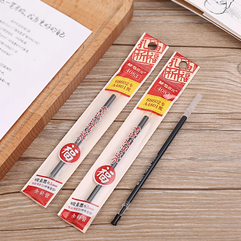 M & G 4083 20 шт/40 шт. 0,5 мм офисная Ручка гелевая ручка с черными пополнения Нержавеющая сталь перо Вольфрам твердосплавный шарик пополнения Длина 130 мм Спецификация продукта Модель: 4083 Ручка Спецификация: 0,5 мм Цвет пополнения: черный Длина заправки: 130 мм Параметры: 20 шт./кор. Размер: 43*43*180 (Купите 40 заправок, дайте бесплатную ACT55901 коррекционную ленту) Особенности 1. 0,5 мм полный капиллярная трубка перо износостойкое покрытие предотвращает образование, прочный, изысканные принадлежности 2. Каждое пополнение имеет отдельную пластиковую упаковку 3. Нержавеющая сталь наконечник и карбид вольфрама мяч не легко течь чернила 4. Наконечник ручки имеет защитный чехол 5. Подходит для замены нейтральной ручки вставного типа