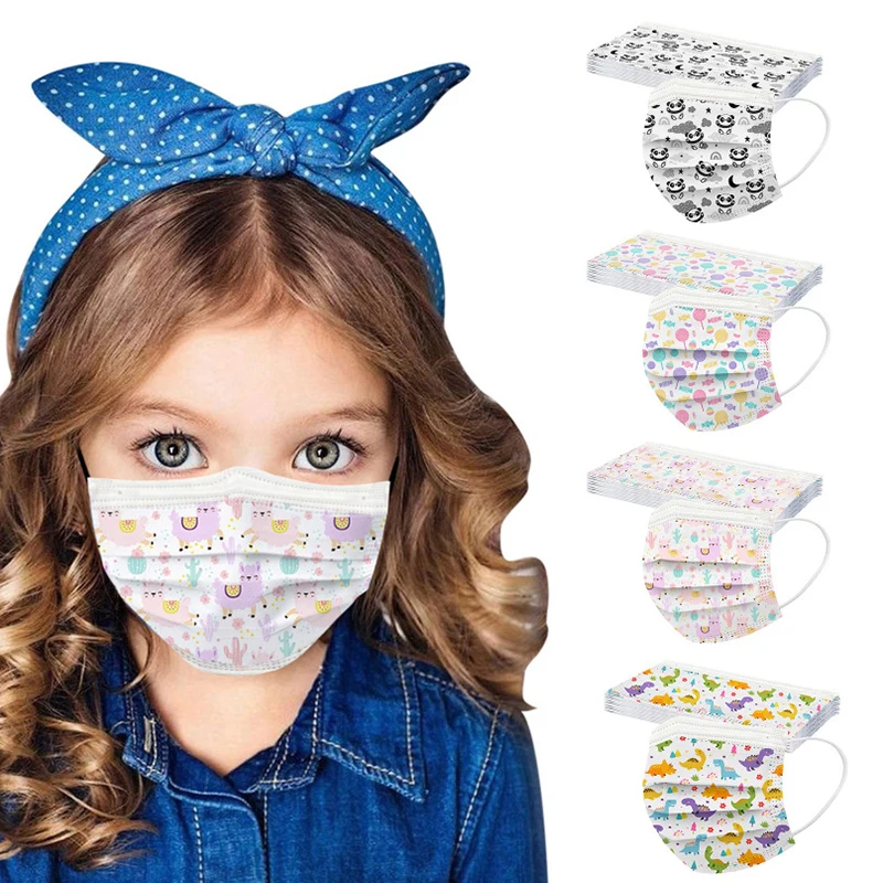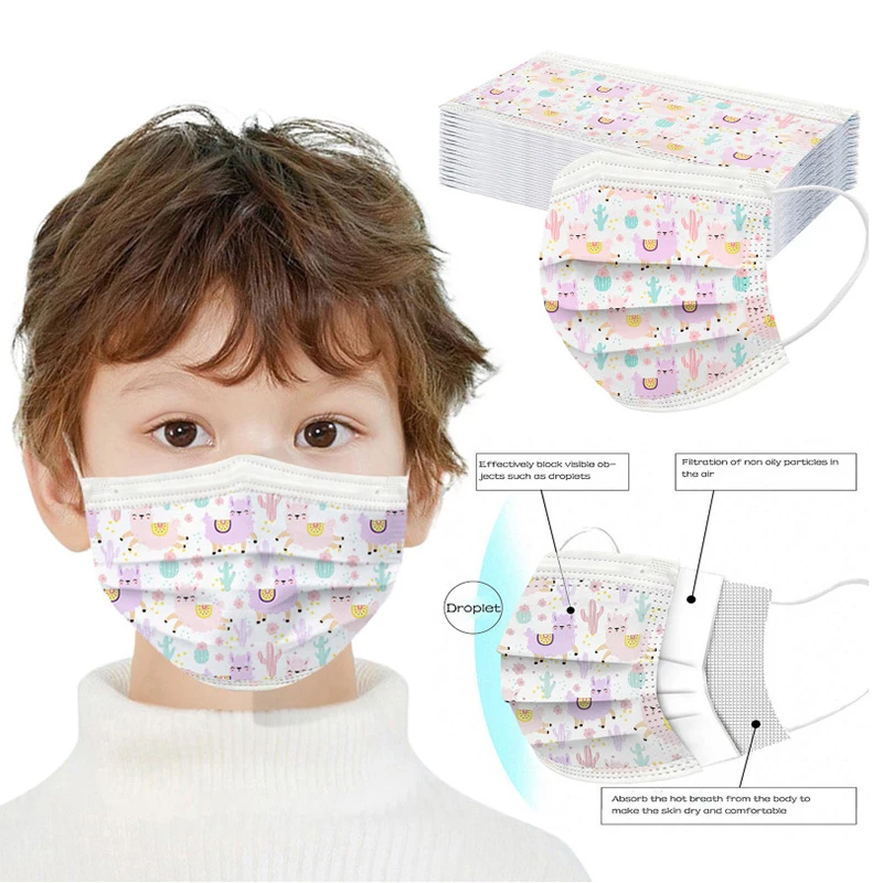 50 шт., детские одноразовые маски для лица, 3 слоя, милый кот, радуга, цветок, мультяшный принт, Mascarillas Niños, детская маска для рта, Enfant