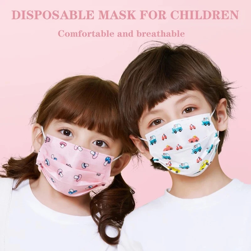 50 шт., одноразовые маски для лица для детей, 3 слоя
