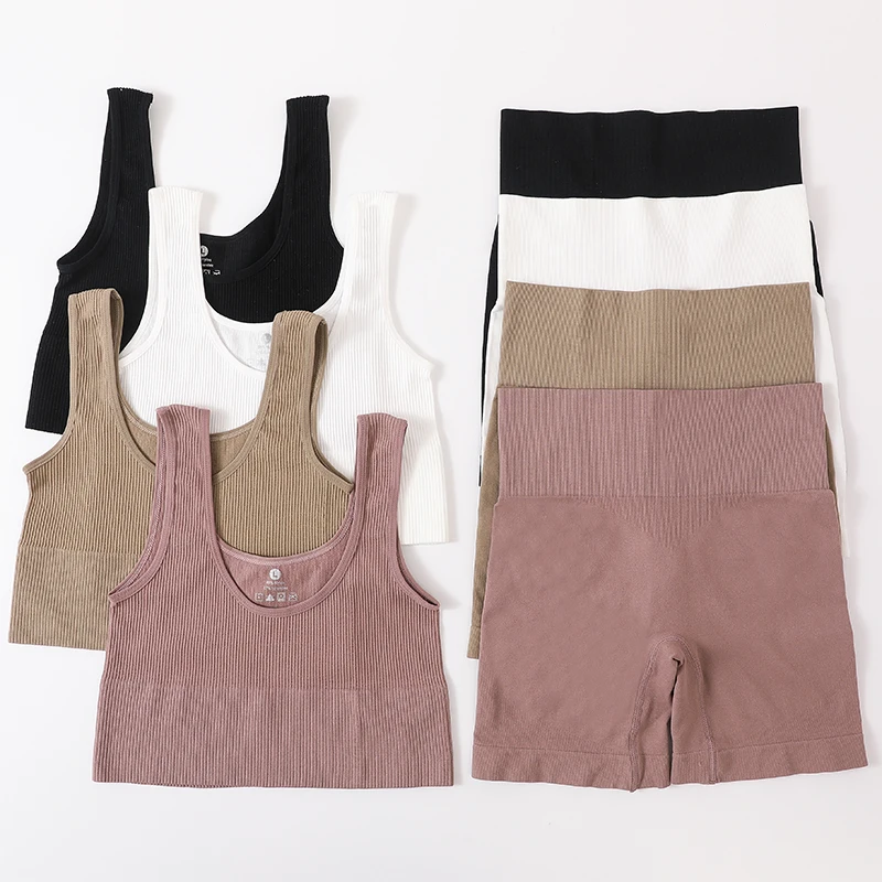 Женский комплект из бюстгальтера и трусиков, летний комплект из топа и шортов для тренировок с эффектом пуш-ап, укороченный топ для активного отдыха, женское Бесшовное нижнее белье