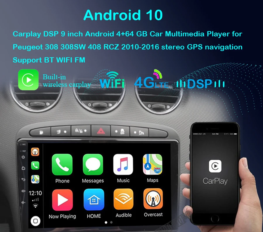 Автомобильный DVD-плеер для Peugeot, 4 Гб + 64 ГБ, Android 10, мультимедийный проигрыватель с радио, GPS-навигацией, Wi-Fi, RDS, IPS, 2din, без dvd, для Peugeot 408, 308, 308SW