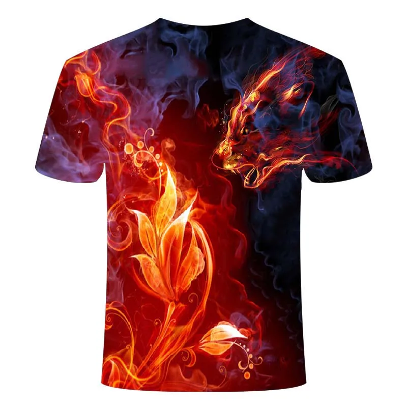 Мужская футболка с 3D-принтом пламени, универсальная Повседневная ф...