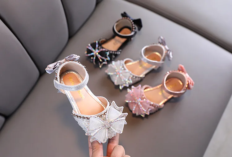 Детские сандалии с бантом и стразами, туфли принцессы для девочек, модная обувь на плоской подошве для танцев и представлений, Новинка лета 2022, детские сандалии E863