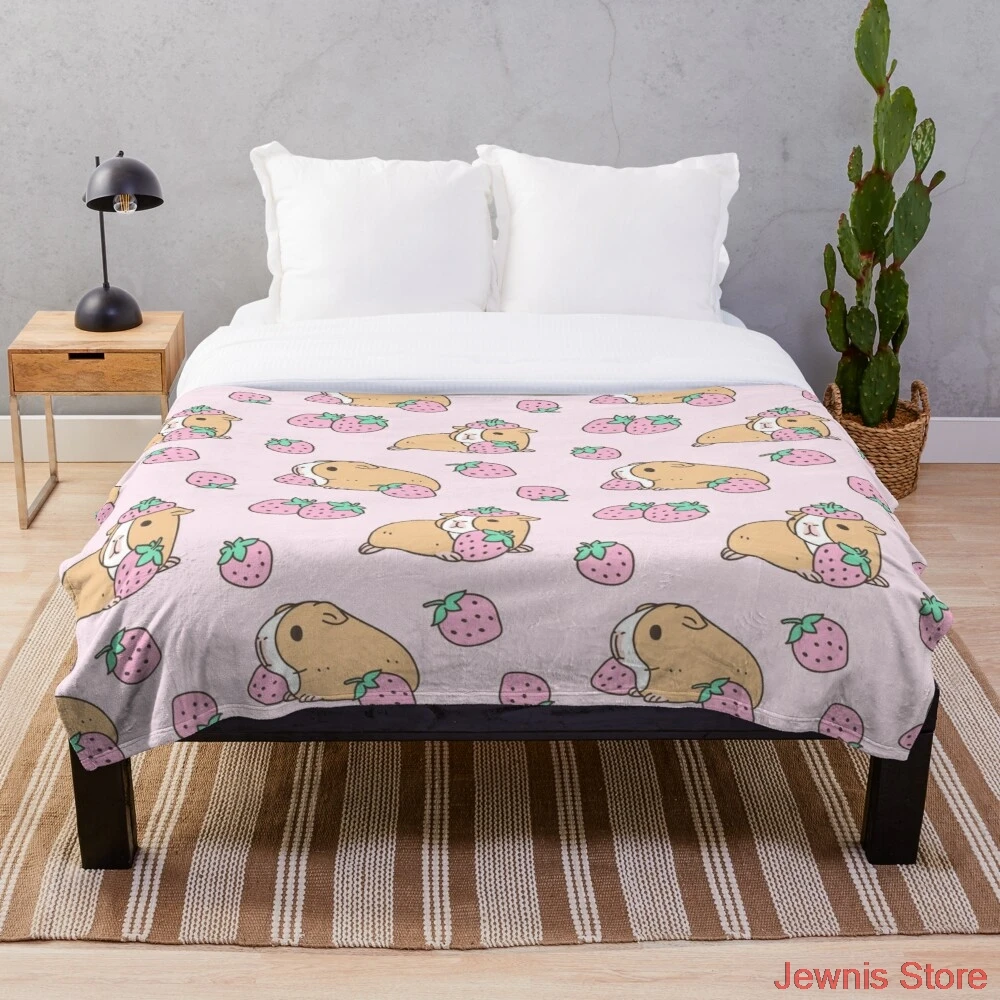 Одеяло Fleeceon для детей и взрослых, покрывало в розовую морскую свинью и клубничку, кроватькроваткадиван для мальчиков и девочек, подарок для детей