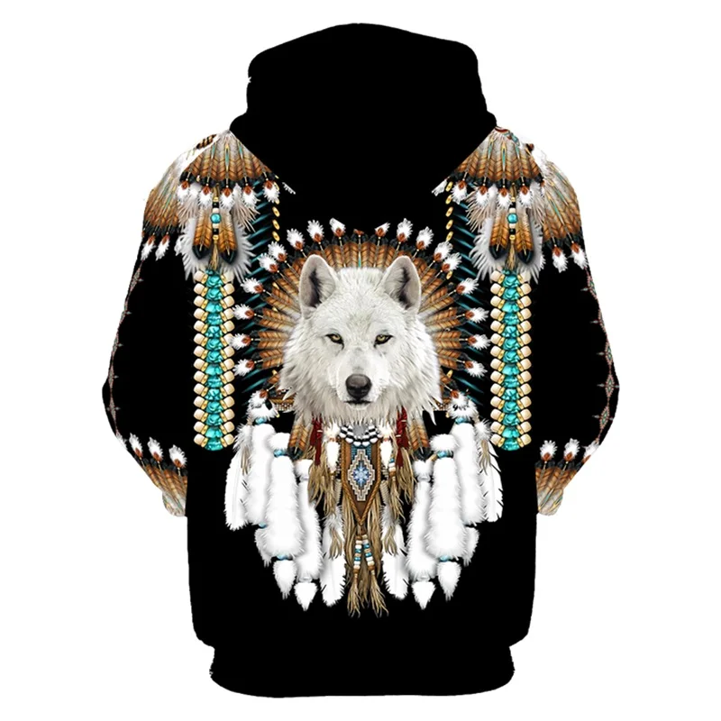 Толстовка мужская с капюшоном и 3D-принтом индийского волка