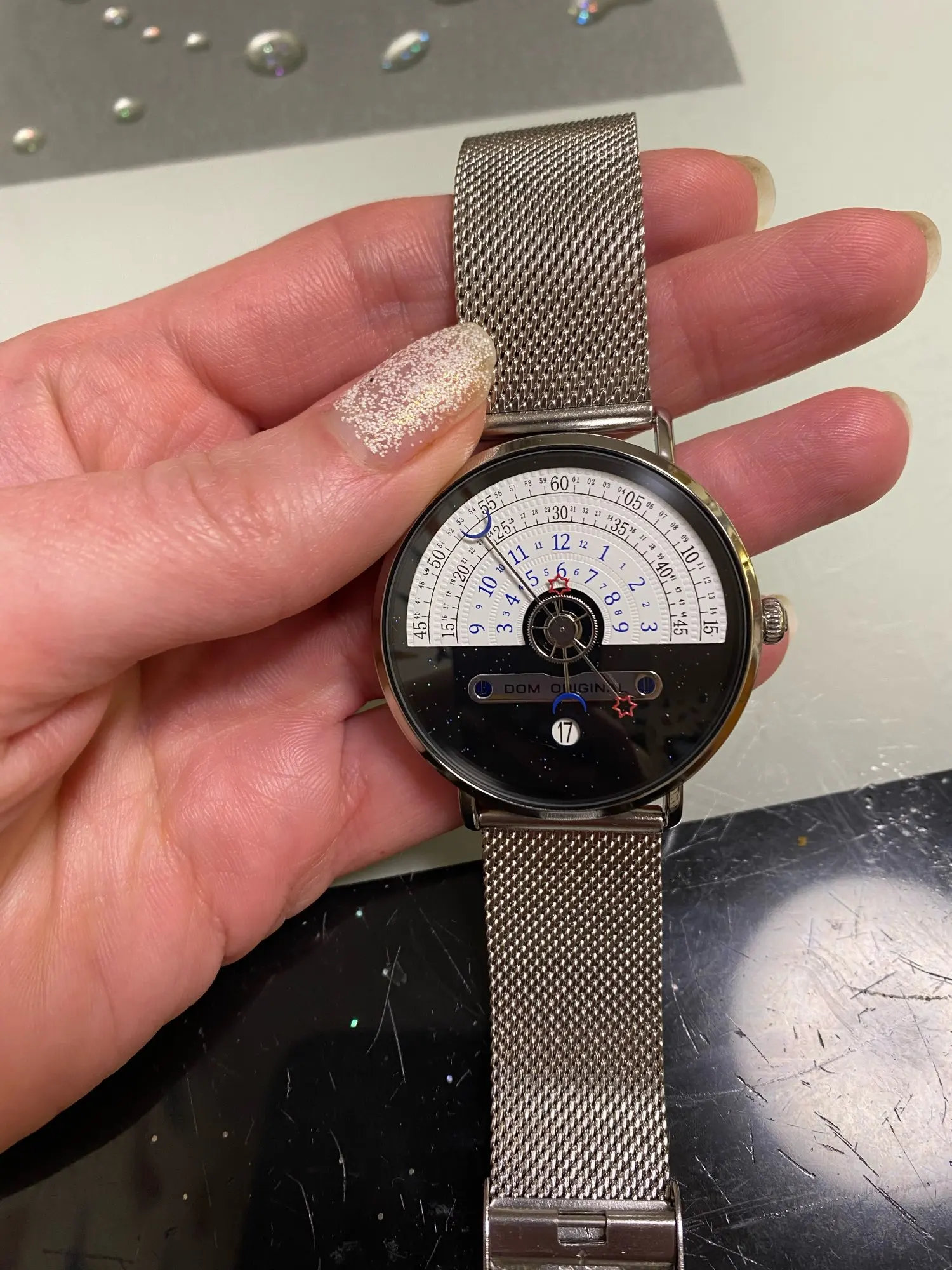 Я заказал часы для моего мужа, но мой муж большой, ремешок был слишком мал. К слову, на этот раз купил в этом магазине, ремешок сделан из нержавеющей стали, это очень хорошо! С тех пор, как я думал, что это пластик. Я сам его надену. Легкий, очень простой, но стильный