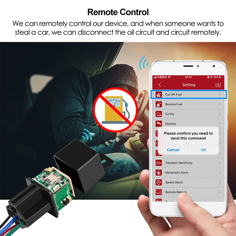 Автомобильный трекер, реле GPS трекера, Отключение подачи топлива, дизайн автомобиля, GPS-локатор, Google карты, отслеживание в режиме реального времени, Аварийная сигнализация, бесплатное приложение