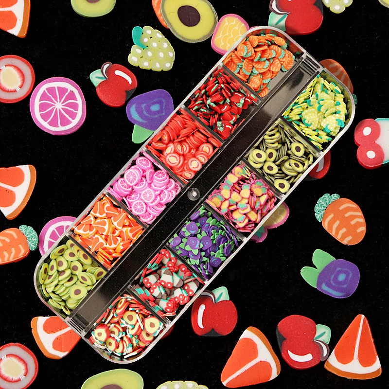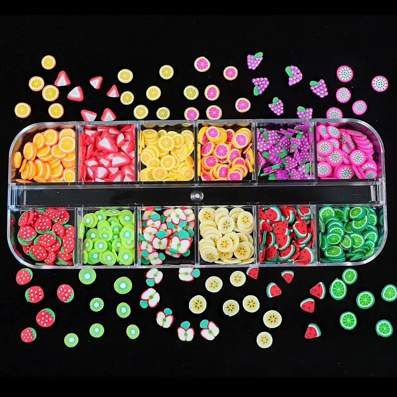12 ячеек DIY Смешанные фруктовые ломтики красочные Типсы для ногтей...