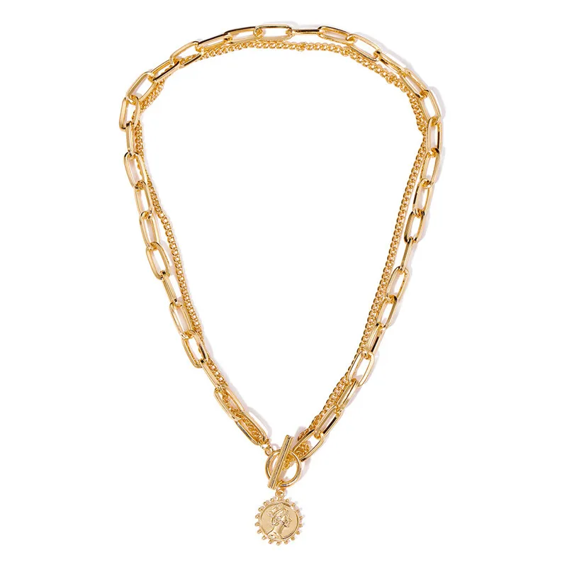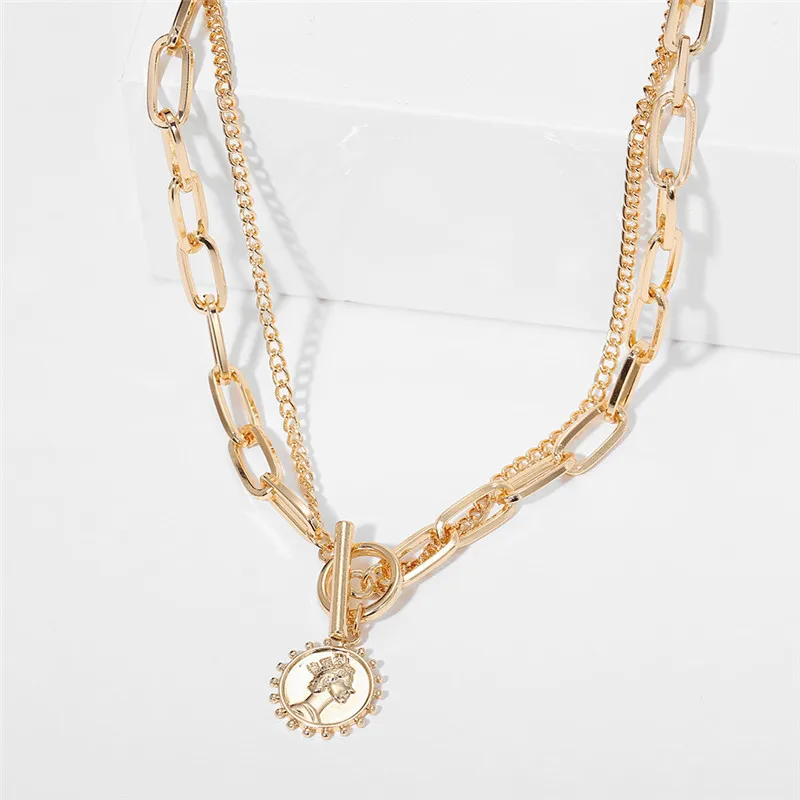 Ожерелье женское из толстой цепи с резной монеткой, винтажное ожерелье с пряжкой из металла в богемном стиле, чокер в стиле панк, модное Ювелирное Украшение