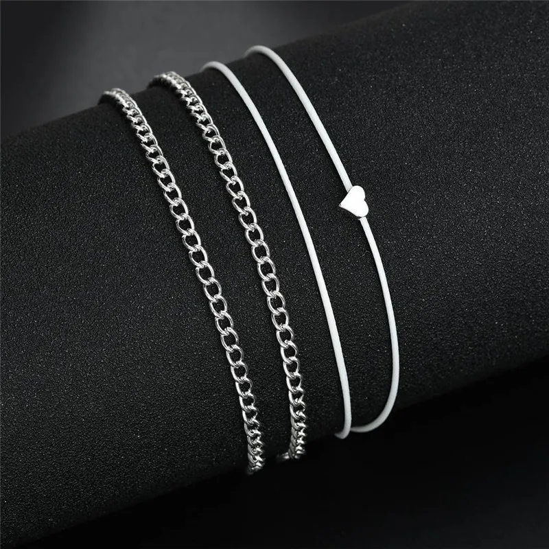 Богемный браслет на ногу, Серебристый браслет на ногу, модные женские ножные браслеты с сердцем, цепочка для ног, пляжные украшения для ног