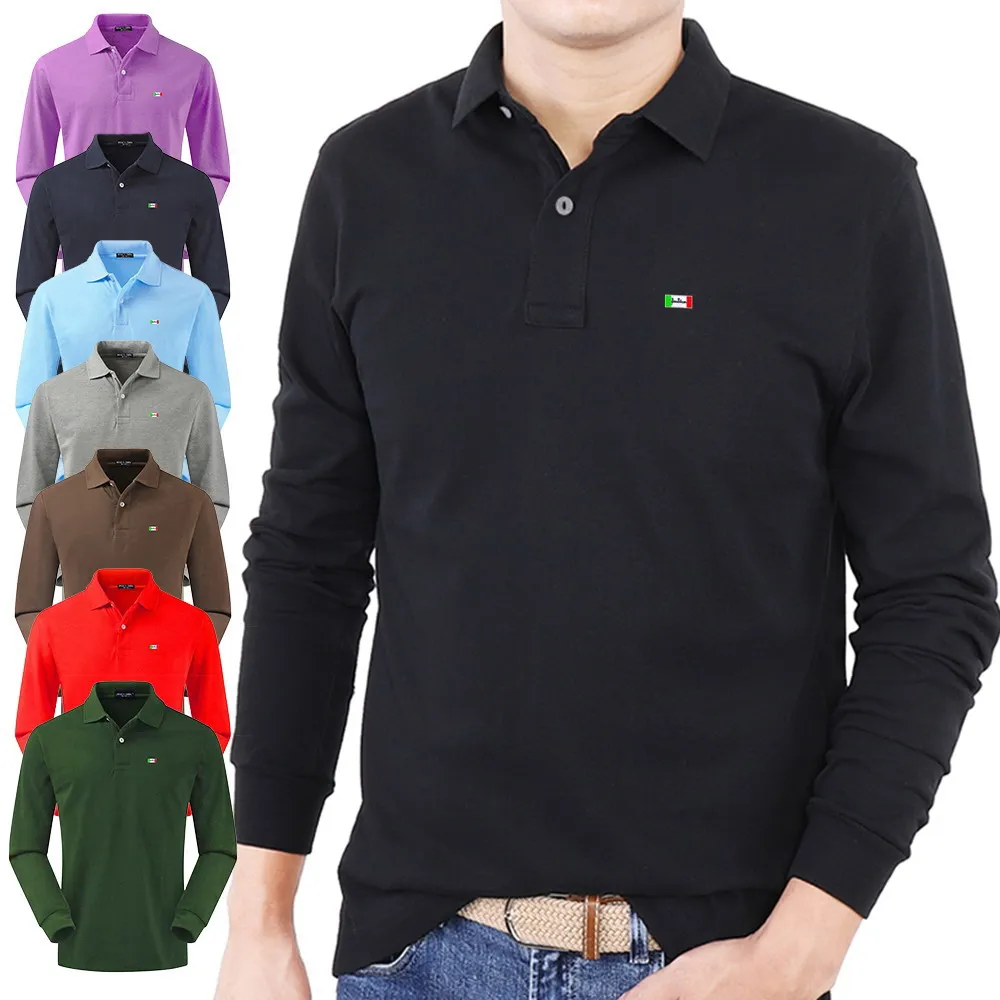 Высокое качество 100% хлопковая футболка на веснуосень для мужчин с длинным рукавом футболки-поло рубашки для мальчиков фирменные рубашки-поло для детей Homme Модные Верх с отложным воротником и XS-4XL YP812