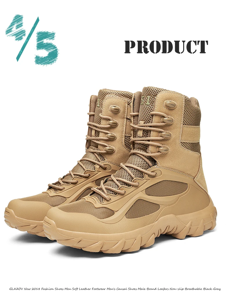 Ботинки мужские тактические, Водонепроницаемые кожаные рабочие ботинки в стиле милитари специального назначения для пустыни, армейские полуботинки, осень