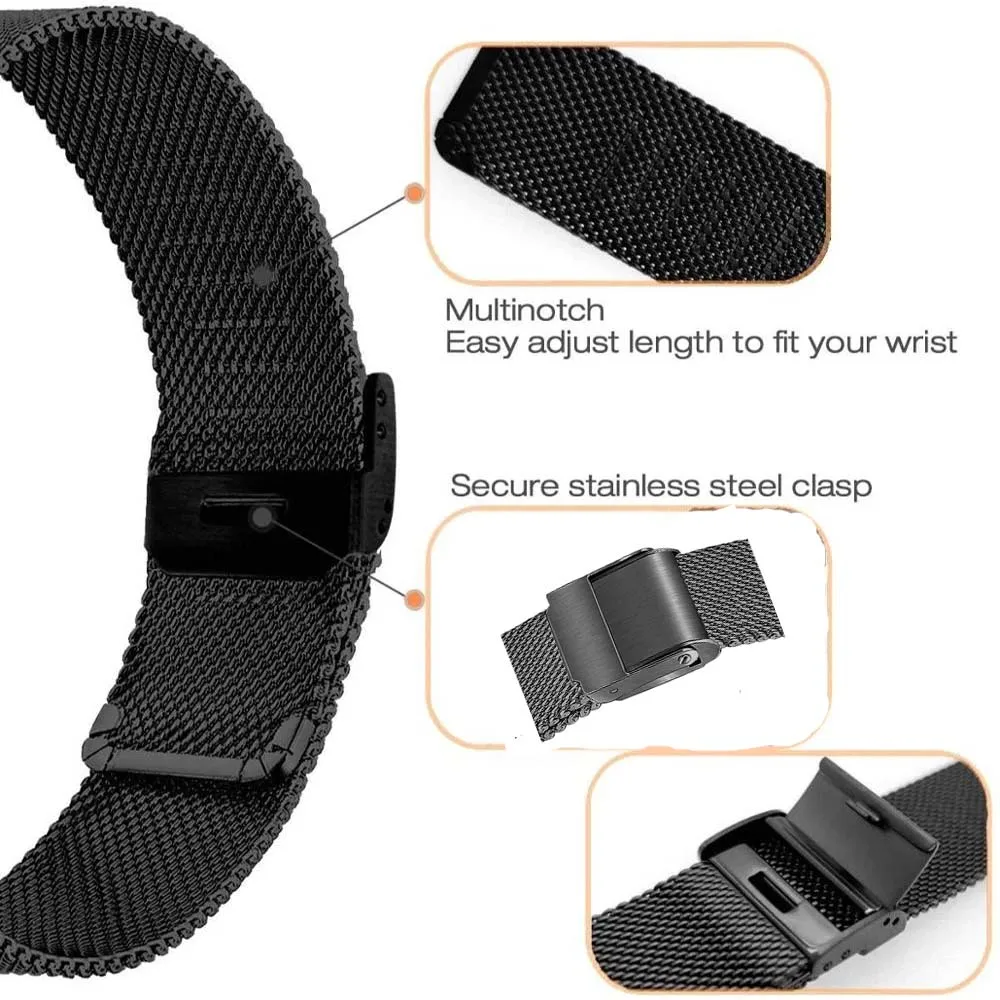 Ремешок из нержавеющей стали Миланская петля для наручных часов, че...