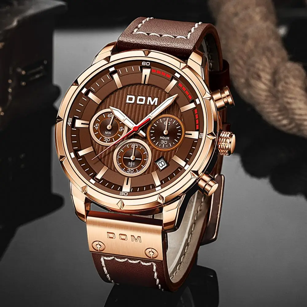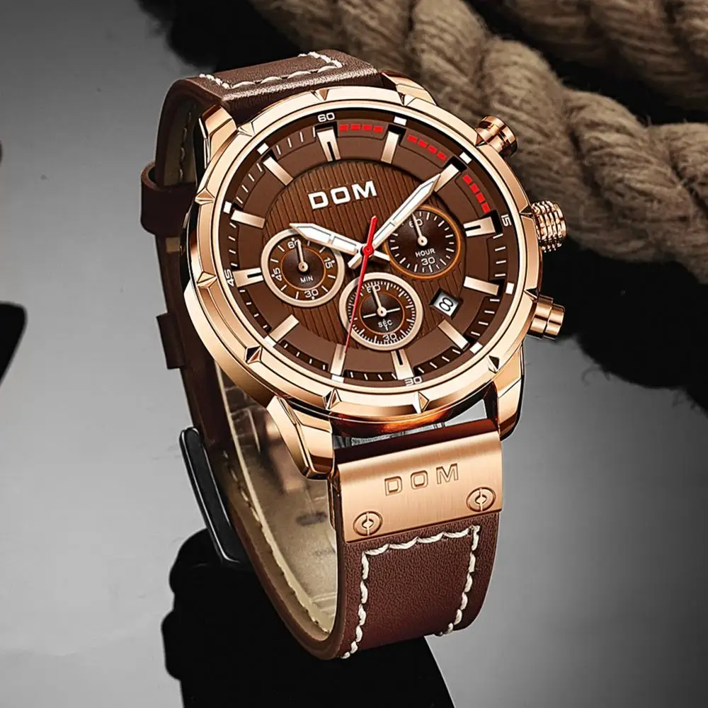 Новинка 2021, спортивные часы DOM Sapphire для мужчин, Роскошные военные наручные часы от лучшего бренда с кожаным ремешком, мужские часы, наручные часы с хронографом для мужчин