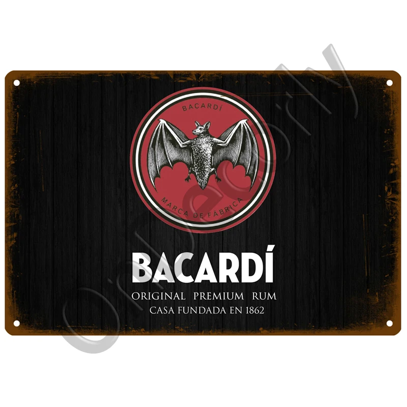Металлический плакат Bacardi для виски, винтажный металлический винтажный декор, украшение для комнаты, Настенный декор, потертая шикарная пластина