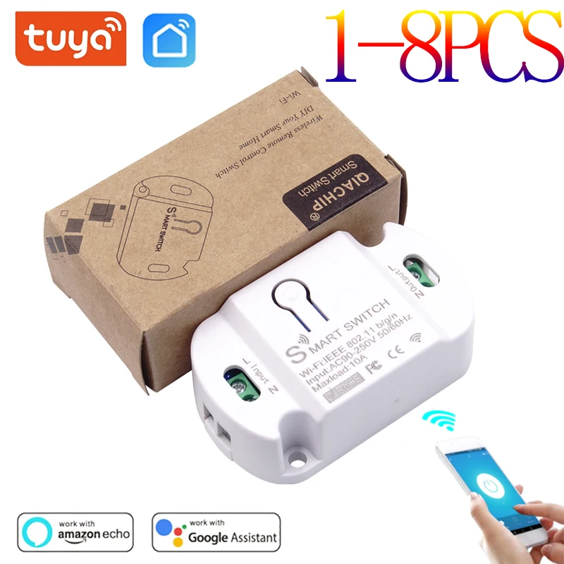 Умный выключатель Tuya 10 А с дистанционным управлением, Wi-Fi, с таймером, управлением через приложение, для умного дома, совместим с AlexaGoogle Home, Прямая поставка