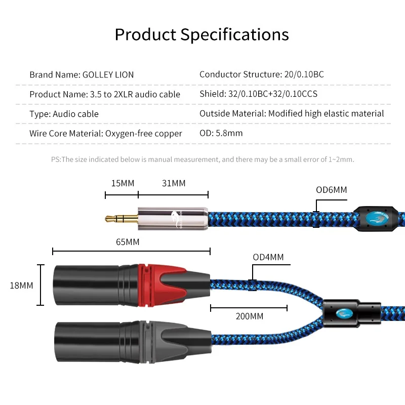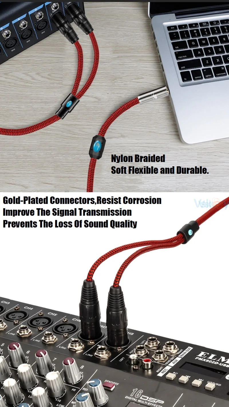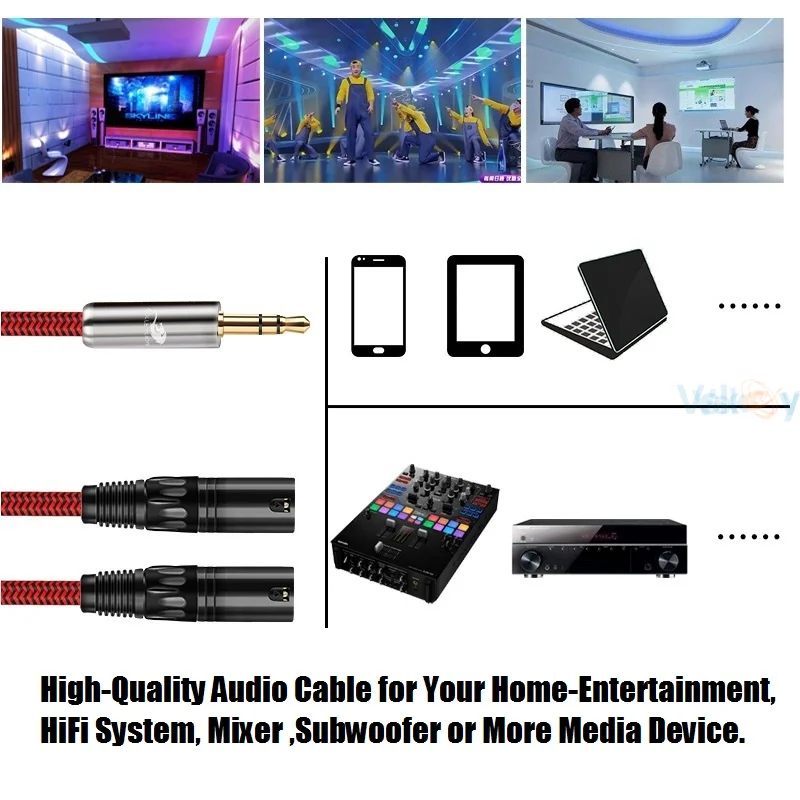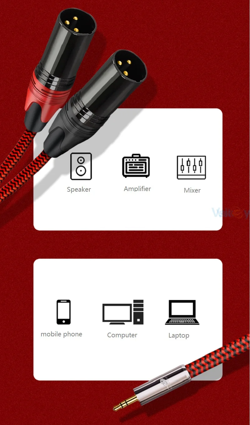 Широкая совместимость: 3,5 мм с двойным XLR аудио кабель совместим с вашим телефоном, ноутбука, настольного компьютера, HDTV, DVD, MP3/4, и любыми другими устройствами с 3,5 мм Слот; 2 несимметричных/моно сигналов XLR, можно подключить к усилителю, миксеру, смесительной плате, preamp, аудио интерфейсу, Или аналогичное оборудование, которое позволяет использовать два входа XLR (влево/вправо).